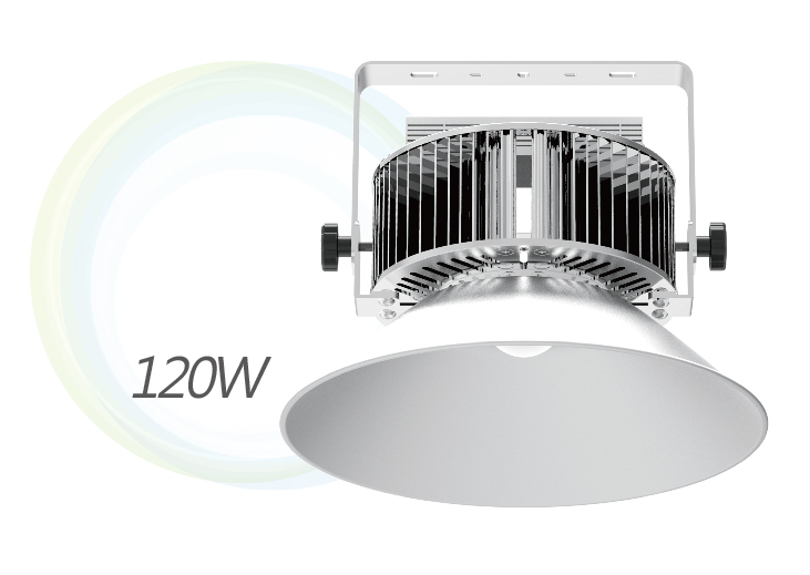 Wall-mounted Ø393x 321mm(H)Metode Pemasangan M8 Hanging-mounted or U-Bar Wall-mounted Tegangan Input AC100~240V, 50/60Hz Wattage 120W±10% Luminous Intensity 115 lm/w±5% Luminous Flux Temperatur 13800 lm±5% Warna Beam 3000K±400K/ 4500K±500K/ 5500K±500K Angle Faktor 60°/ 90°/ 120° Symmetric Lens Daya Indeks >0.95 Rendering Warna >80Ra Berlaku Lingkungan -20℃ ~ 50℃ Waterproof dan tahan debu grade IP65 Bahan berat Anodized Aluminum, Hanging-mounted 5.8Kg,